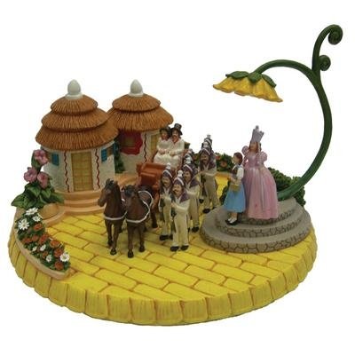 From the Wizard of Oz Collection. Wizard of Oz Munchkin Parade Figure. This figurine features Dorothy and Glinda watching the Munchkins' Parade with the Munchkin Guard and a horse drawn carriage. Made of resin. Measures 4.25" tall.